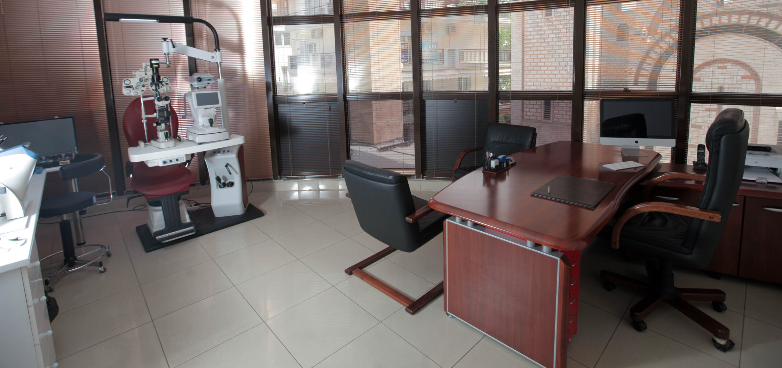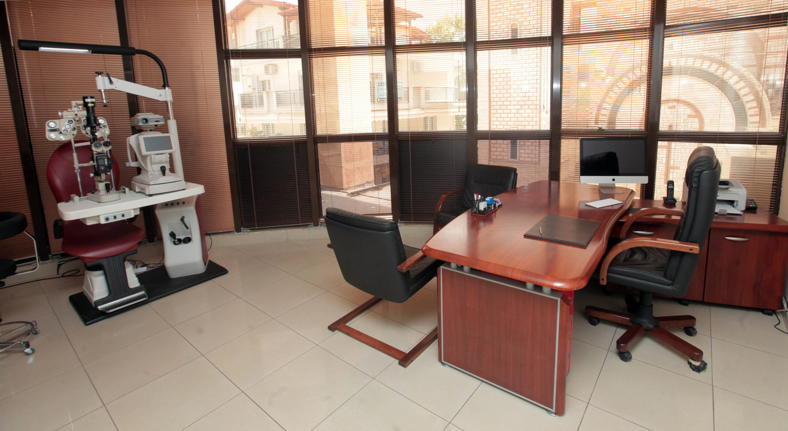 Το ιατρείο βρίσκεται στο εμπορικό κέντρο της πλατείας Ευόσμου, έναντι της Εκκλησίας του Ευαγγελισμού της Θεοτόκου (Ευαγγελισμού της Θεοτόκου 29, Εύοσμος 562 24). Σε ένα άνετο και καλαίσθητο περιβάλλον παρέχονται σύγχρονες οφθαλμολογικές υπηρεσίες, εναρμονισμένες με τις νεότερες επιστημονικές εξελίξεις. Το οφθαλμιατρείο είναι πιστοποιημένο με τον ΕΟΠΥΥ για συνταγογράφηση γυαλιών και φαρμάκων στα πλαίσια αμοιβόμενης επίσκεψης.